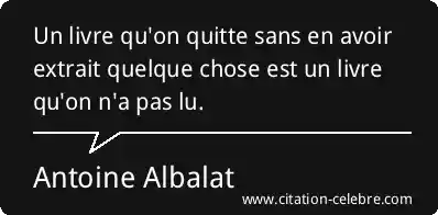 Un livre qu'on quitte sans en avoir extrait quelque chose est un livre qu'on n'a pas lu.