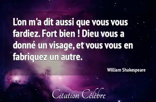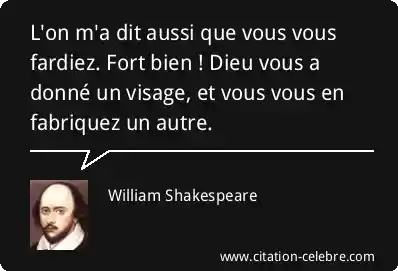 L'on m'a dit aussi que vous vous fardiez. Fort bien ! Dieu vous a donné un visage, et vous vous en fabriquez un autre.