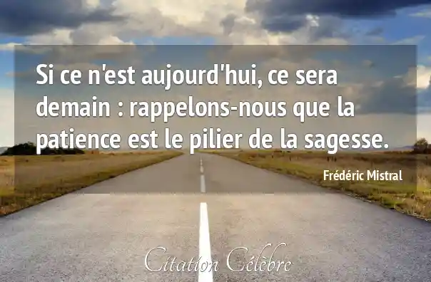 Si ce n'est aujourd'hui, ce sera demain : rappelons-nous que la patience est le pilier de la sagesse.
