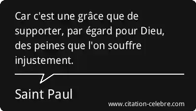 Car c'est une grâce que de supporter, par égard pour Dieu, des peines que l'on souffre injustement.