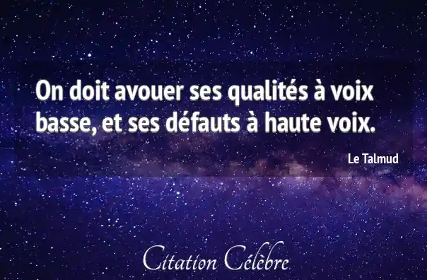 On doit avouer ses qualités à voix basse, et ses défauts à haute voix.