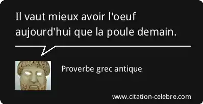 Il vaut mieux avoir l'oeuf aujourd'hui que la poule demain.
