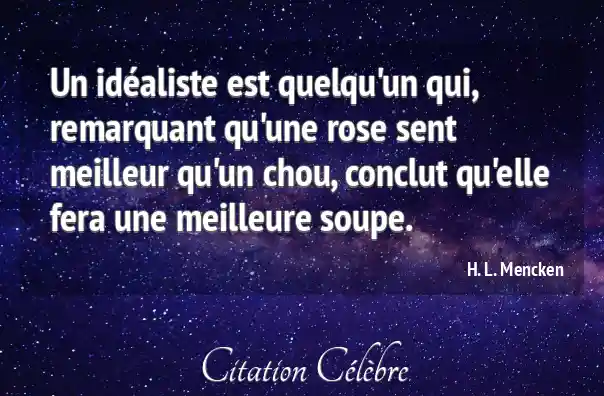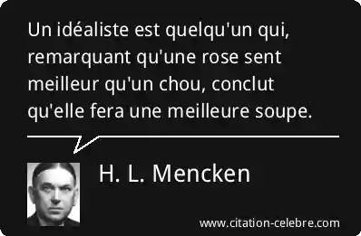 Un idéaliste est quelqu'un qui, remarquant qu'une rose sent meilleur qu'un chou, conclut qu'elle fera une meilleure soupe.