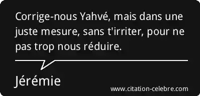 Corrige-nous Yahvé, mais dans une juste mesure, sans t'irriter, pour ne pas trop nous réduire.