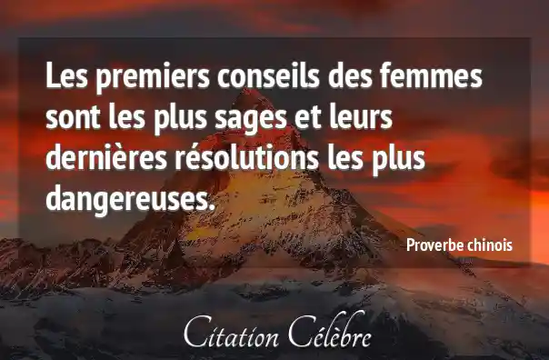 Les premiers conseils des femmes sont les plus sages et leurs dernières résolutions les plus dangereuses.