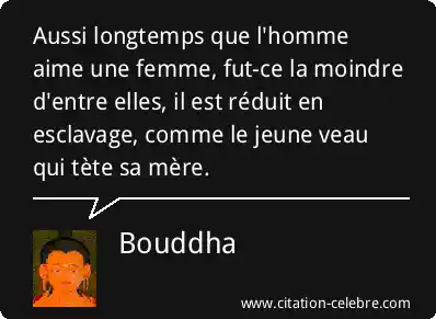 Aussi longtemps que l'homme aime une femme, fut-ce la moindre d'entre elles, il est réduit en esclavage, comme le jeune veau qui tète sa mère.