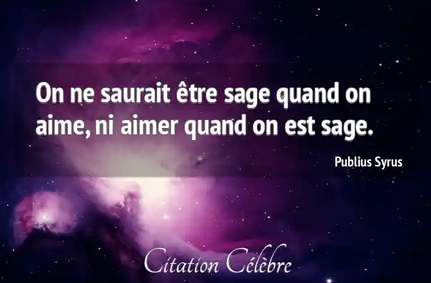 On ne saurait être sage quand on aime, ni aimer quand on est sage.