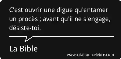 C'est ouvrir une digue qu'entamer un procès ; avant qu'il ne s'engage, désiste-toi.