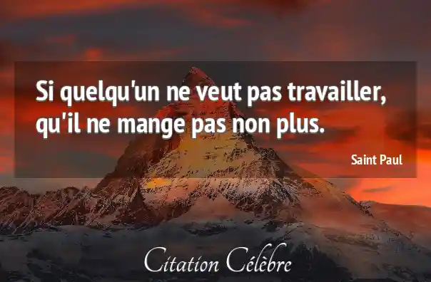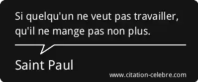 Si quelqu'un ne veut pas travailler, qu'il ne mange pas non plus.