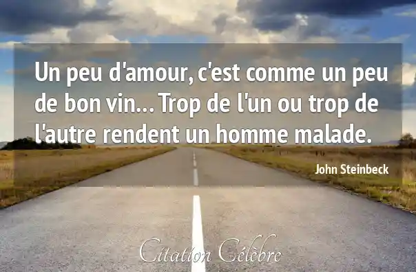 Un peu d'amour, c'est comme un peu de bon vin... Trop de l'un ou trop de l'autre rendent un homme malade.