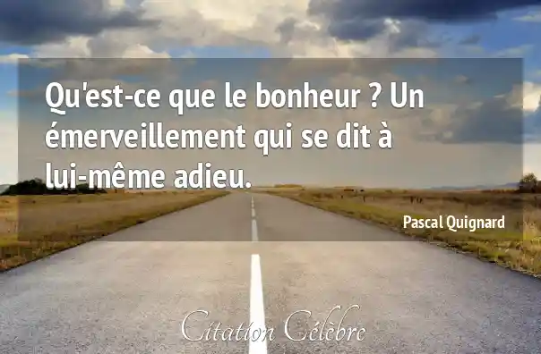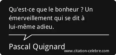 Qu'est-ce que le bonheur ? Un émerveillement qui se dit à lui-même adieu.
