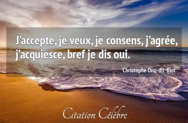 J'accepte, je veux, je consens, j'agrée, j'acquiesce, bref je dis oui.