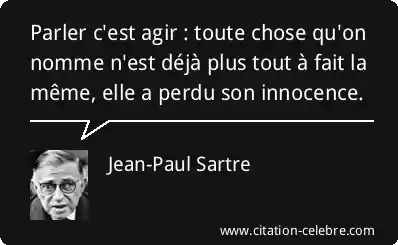 Parler c'est agir : toute chose qu'on nomme n'est déjà plus tout à fait la même, elle a perdu son innocence.