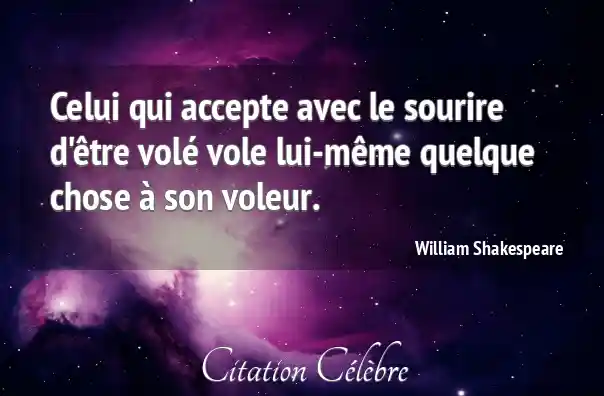 Celui qui accepte avec le sourire d'être volé vole lui-même quelque chose à son voleur.