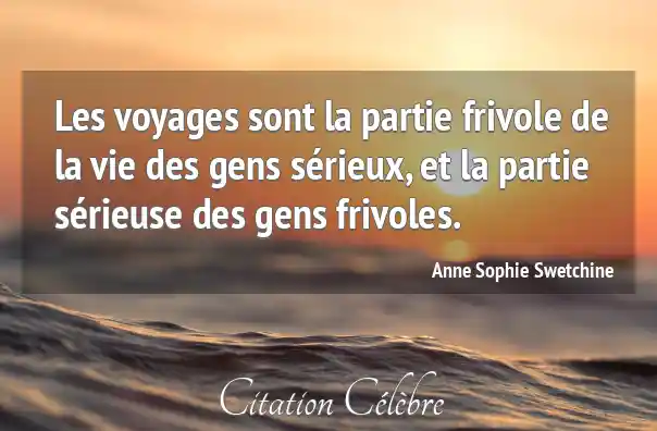 Les voyages sont la partie frivole de la vie des gens sérieux, et la partie sérieuse des gens frivoles.