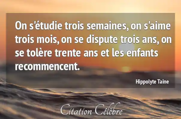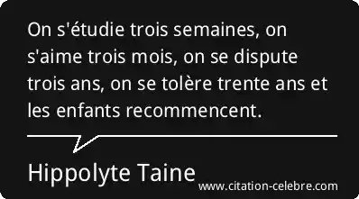On s'étudie trois semaines, on s'aime trois mois, on se dispute trois ans, on se tolère trente ans et les enfants recommencent.