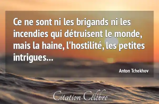 Ce ne sont ni les brigands ni les incendies qui détruisent le monde, mais la haine, l'hostilité, les petites intrigues...