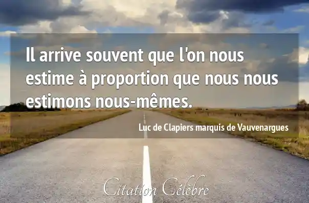 Il arrive souvent que l'on nous estime à proportion que nous nous estimons nous-mêmes.