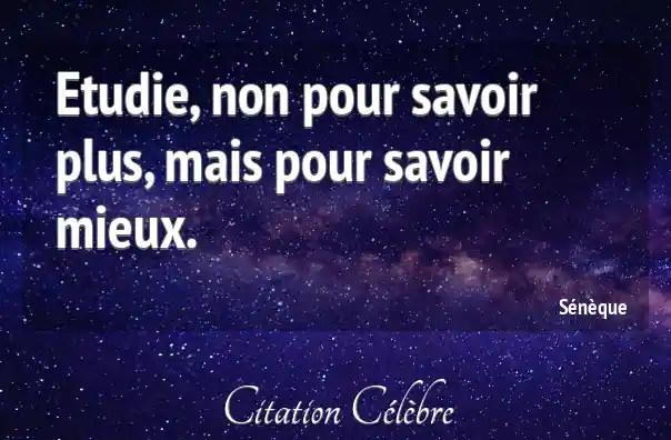 Etudie, non pour savoir plus, mais pour savoir mieux.