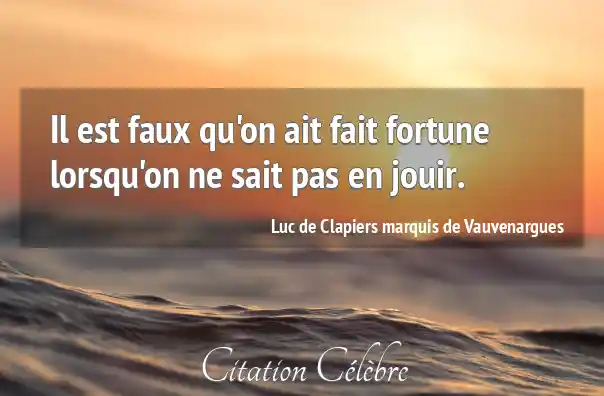 Il est faux qu'on ait fait fortune lorsqu'on ne sait pas en jouir.