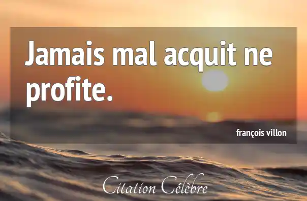 Citation François Villon mal : Jamais mal acquit ne profite....