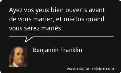 Ayez vos yeux bien ouverts avant de vous marier, et mi-clos quand vous serez mariés.
