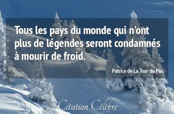 Tous les pays du monde qui n'ont plus de légendes seront condamnés à mourir de froid.