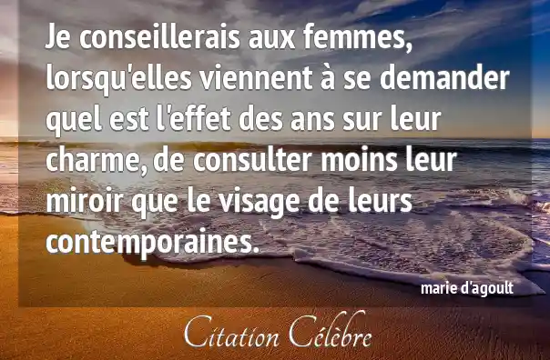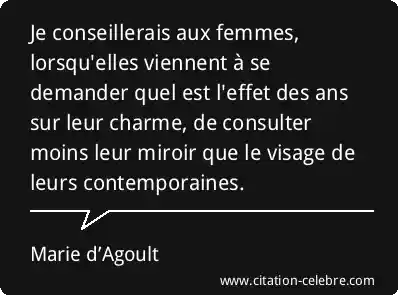 Je conseillerais aux femmes, lorsqu'elles viennent à se demander quel est l'effet des ans sur leur charme, de consulter moins leur miroir que le visage de leurs contemporaines.