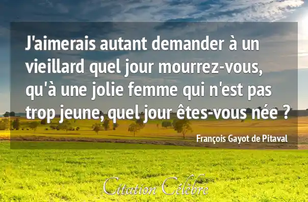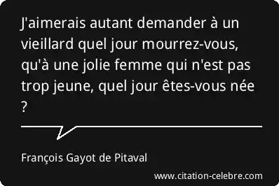 J'aimerais autant demander à un vieillard quel jour mourrez-vous, qu'à une jolie femme qui n'est pas trop jeune, quel jour êtes-vous née ?