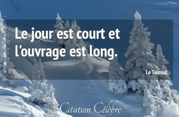 Le jour est court et l'ouvrage est long.