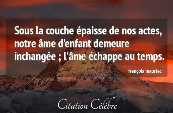 Sous la couche épaisse de nos actes, notre âme d'enfant demeure inchangée ; l'âme échappe au temps.