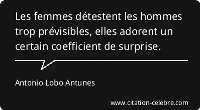 Citation Antonio Lobo Antunes femmes : Les femmes détestent les hommes trop prévisibles, elles adorent un...