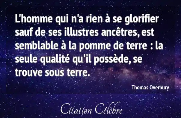 L'homme qui n'a rien à se glorifier sauf de ses illustres ancêtres, est semblable à la pomme de terre : la seule qualité qu'il possède, se trouve sous terre.