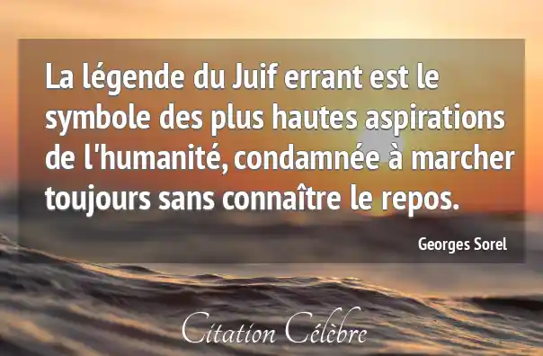 La légende du Juif errant est le symbole des plus hautes aspirations de l'humanité, condamnée à marcher toujours sans connaître le repos.