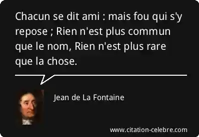 Chacun se dit ami : mais fou qui s'y repose ; Rien n'est plus commun que le nom, Rien n'est plus rare que la chose.
