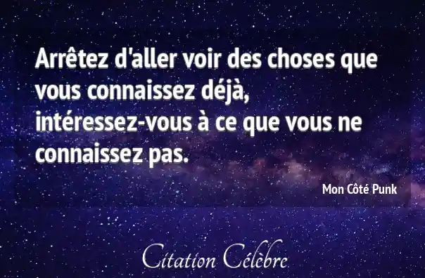 Arrêtez d'aller voir des choses que vous connaissez déjà, intéressez-vous à ce que vous ne connaissez pas.