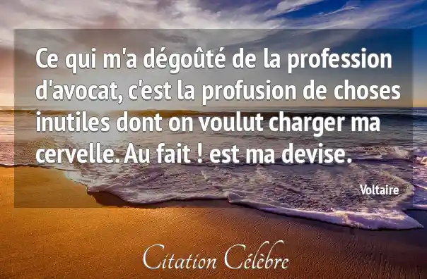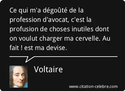 Ce qui m'a dégoûté de la profession d'avocat, c'est la profusion de choses inutiles dont on voulut charger ma cervelle. Au fait ! est ma devise.