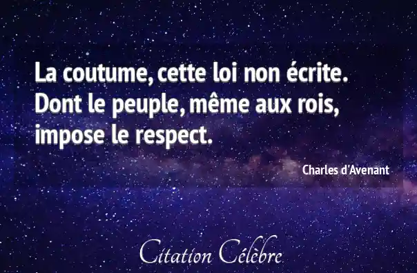 La coutume, cette loi non écrite. Dont le peuple, même aux rois, impose le respect.