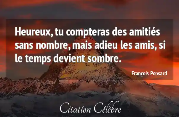 Heureux, tu compteras des amitiés sans nombre, mais adieu les amis, si le temps devient sombre.