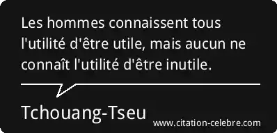 Les hommes connaissent tous l'utilité d'être utile, mais aucun ne connaît l'utilité d'être inutile.