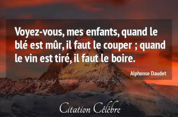 Voyez-vous, mes enfants, quand le blé est mûr, il faut le couper ; quand le vin est tiré, il faut le boire.