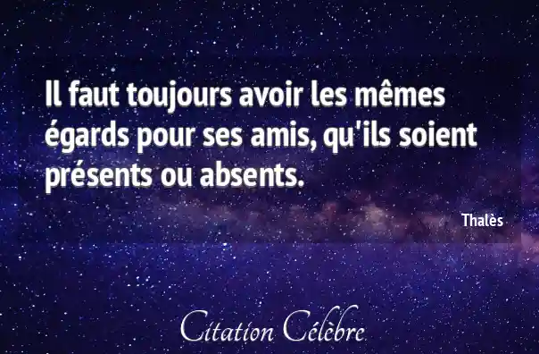 Il faut toujours avoir les mêmes égards pour ses amis, qu'ils soient présents ou absents.