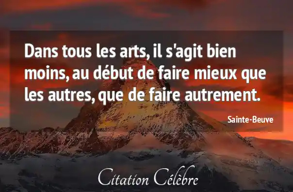 Dans tous les arts, il s'agit bien moins, au début de faire mieux que les autres, que de faire autrement.