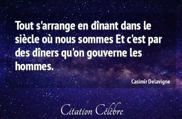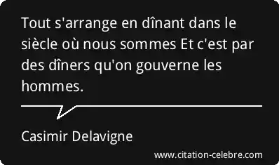 Citation Casimir Delavigne sommes : Tout s'arrange en dînant dans le siècle où nous sommes...