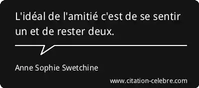 L'idéal de l'amitié c'est de se sentir un et de rester deux.