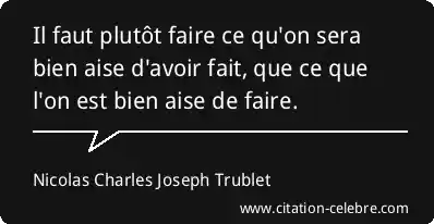 Il faut plutôt faire ce qu'on sera bien aise d'avoir fait, que ce que l'on est bien aise de faire.