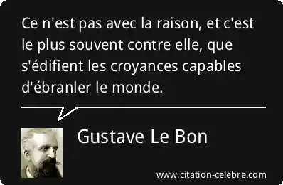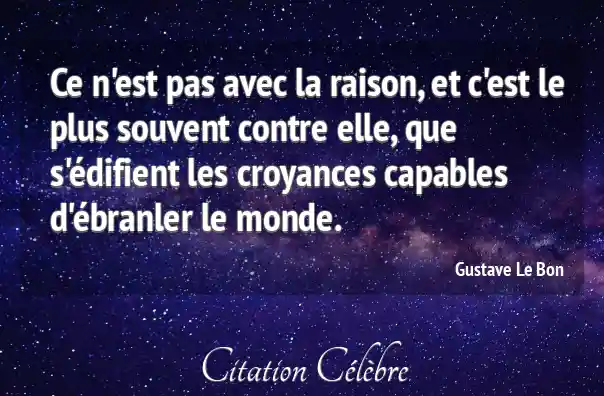 Ce n'est pas avec la raison, et c'est le plus souvent contre elle, que s'édifient les croyances capables d'ébranler le monde.