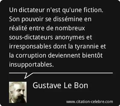 Un dictateur n'est qu'une fiction. Son pouvoir se dissémine en réalité entre de nombreux sous-dictateurs anonymes et irresponsables dont la tyrannie et la corruption deviennent bientôt insupportables.