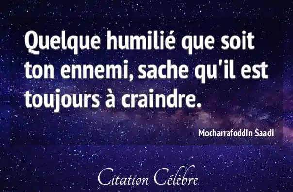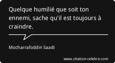 Quelque humilié que soit ton ennemi, sache qu'il est toujours à craindre.