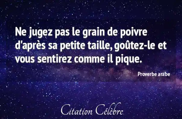 Proverbe  Arabe Taille : Ne jugez pas le grain de poivre d'après sa petite...
